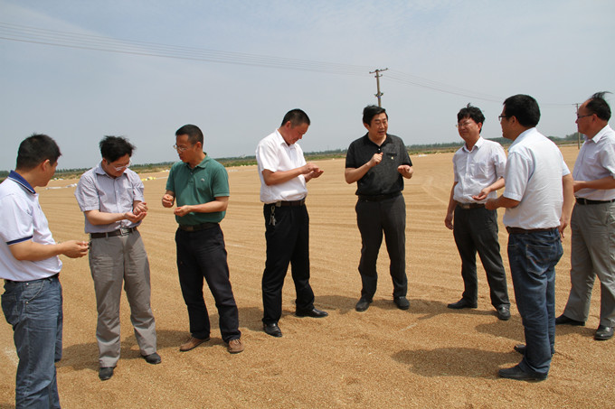 6月8日,蘇墾農(nóng)發(fā)股份公司總裁胡兆輝一行到宿遷分公司檢查指導(dǎo)“三夏”和基地拓展相關(guān)工作,宿遷分公司總經(jīng)理蘇志富等陪同檢查并匯報(bào)相關(guān)情況。