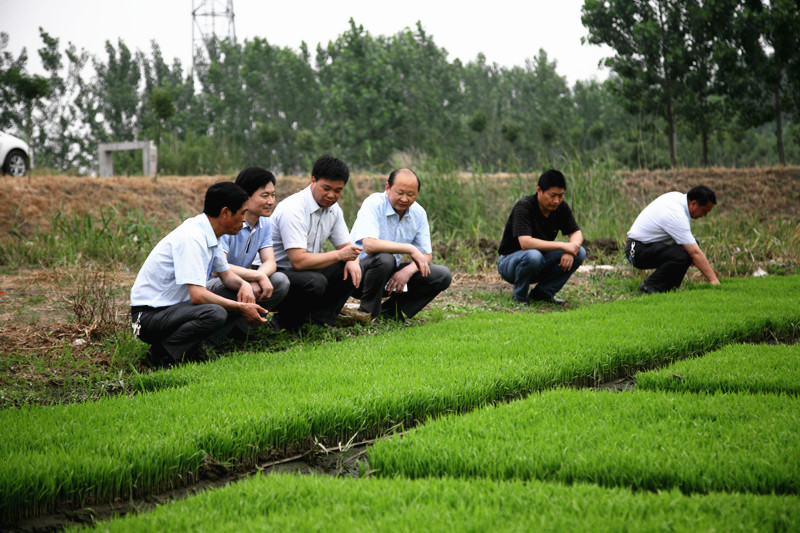 姜建友一行實地查看了旱整水栽栽插稻、農(nóng)科所擺栽田、大華種業(yè)濱淮分公司、七大隊在田水稻長勢等現(xiàn)場。在場期間,姜總裁詳細了解濱淮分公司三夏生產(chǎn)進度,總經(jīng)理郭世平就大小麥?zhǔn)斋@、水稻栽插情況、保種情況等方面工作向姜建友作了匯報。