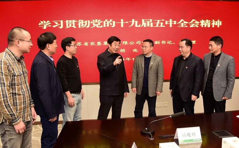 胡兆輝指出,全會高高立起了發展的“里程碑”、科學設定了前行的“方向標”、精心繪制了騰飛的“航線圖”,要把學習宣傳貫徹五中全會精神和總書記視察江蘇重要講話指示精神作為一項重要政治任務。要組織廣大黨員干部認真學習領會全會精神和總書記重要講話指示精神,堅持原原本本學、融會貫通學、創新方式學,切實把握核心要義、吃透精神實質。要把學習貫徹成果轉化為立足崗位作貢獻的強大動力,按照總書記賦予江蘇“爭當表率、爭做示范、走在前列”的新使命新任務,在穩增長、抓改革、促創新、強黨建、防風險等方面扎實工作,確保“十四五”布好局、起好步。