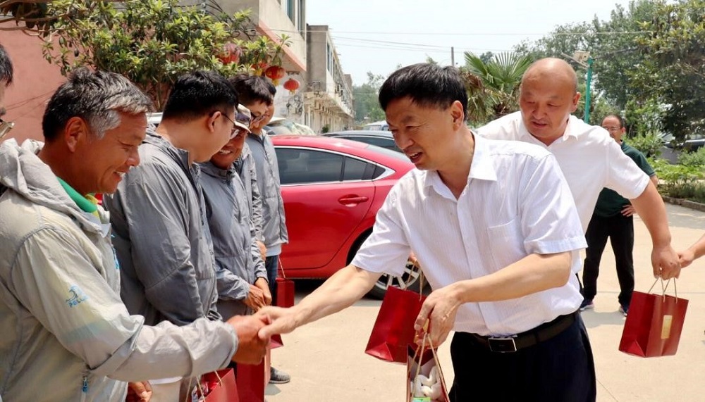 倪志愿先后來到基地員工宿舍、田間地頭,向一線員工們表達了親切的問候,對他們不畏高溫、忠于職守、勤勤懇懇的工作態度表示敬意,并將防暑降溫物品、安全生產手冊送到管理人員手中,為他們加油鼓勁,感謝他們為蘇墾農發高質量發展作出的積極貢獻;叮囑大家要合理休息,農業生產作業時一定要注意身體健康,避開午后高溫天氣,防止中暑。