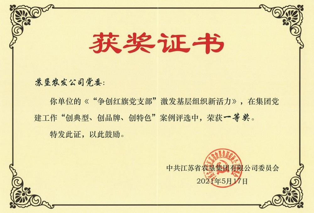 • 近日,由蘇墾農發黨委報送的《以黨建為引領 以創建為抓手 凝聚推動高質量發展強大動力》榮獲“江蘇省國資系統以高質量黨建引領國企高質量發展100案例”一等獎;《“爭創紅旗黨支部”激發基層組織新活力》在集團黨建工作“創典型、創品牌、創特色”案例評選中榮獲一等獎。這些榮譽的獲得充分肯定了近年來農發公司黨委理論學習中心組學習所取得的積極成效。