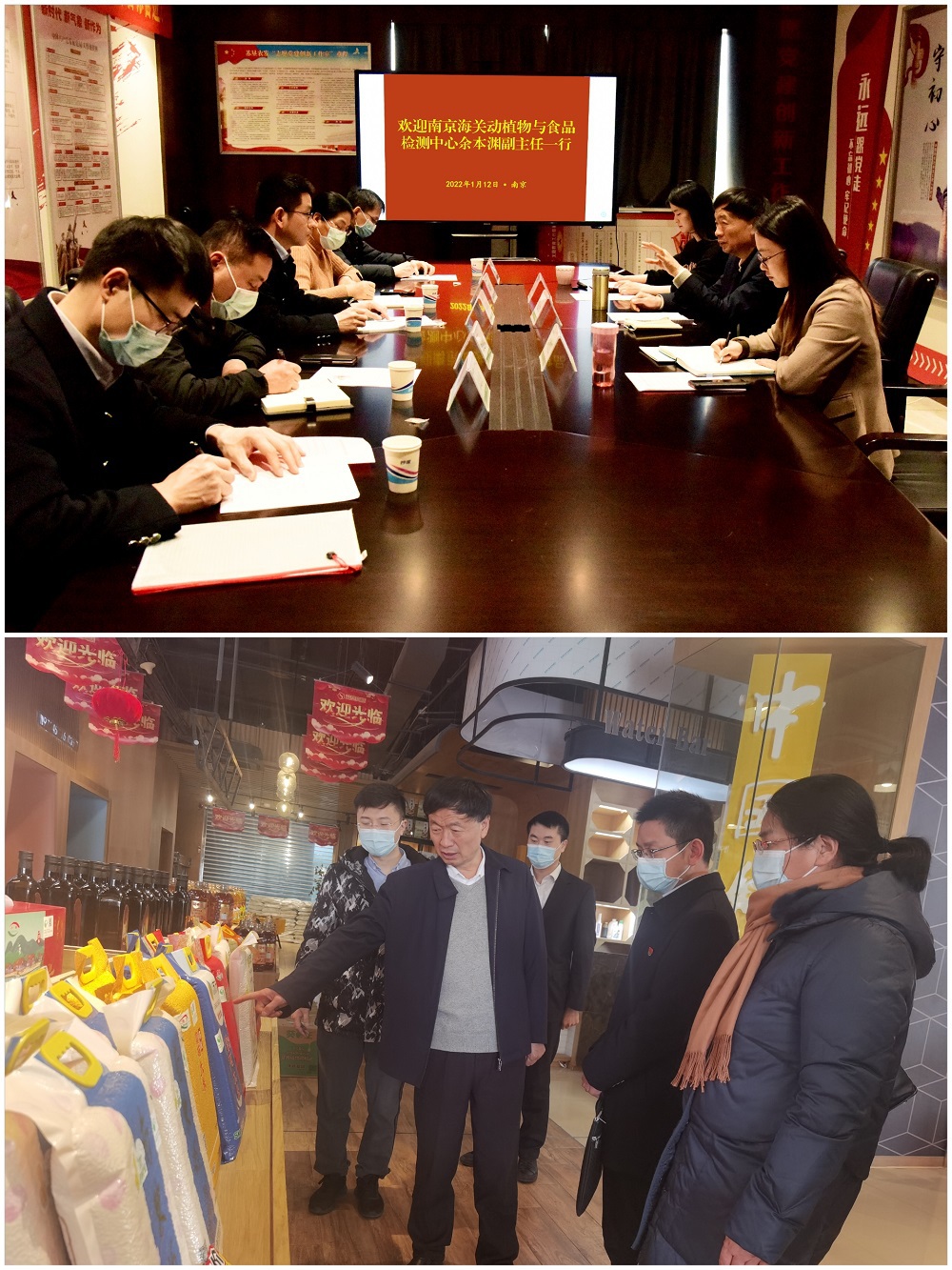 •        1月12日,南京海關動植物與食品檢測中心余本淵副主任一行5人來到蘇墾農發,參觀學習、交流探討黨建工作。蘇墾農發黨委副書記、工會主席倪志愿陪同參觀交流。