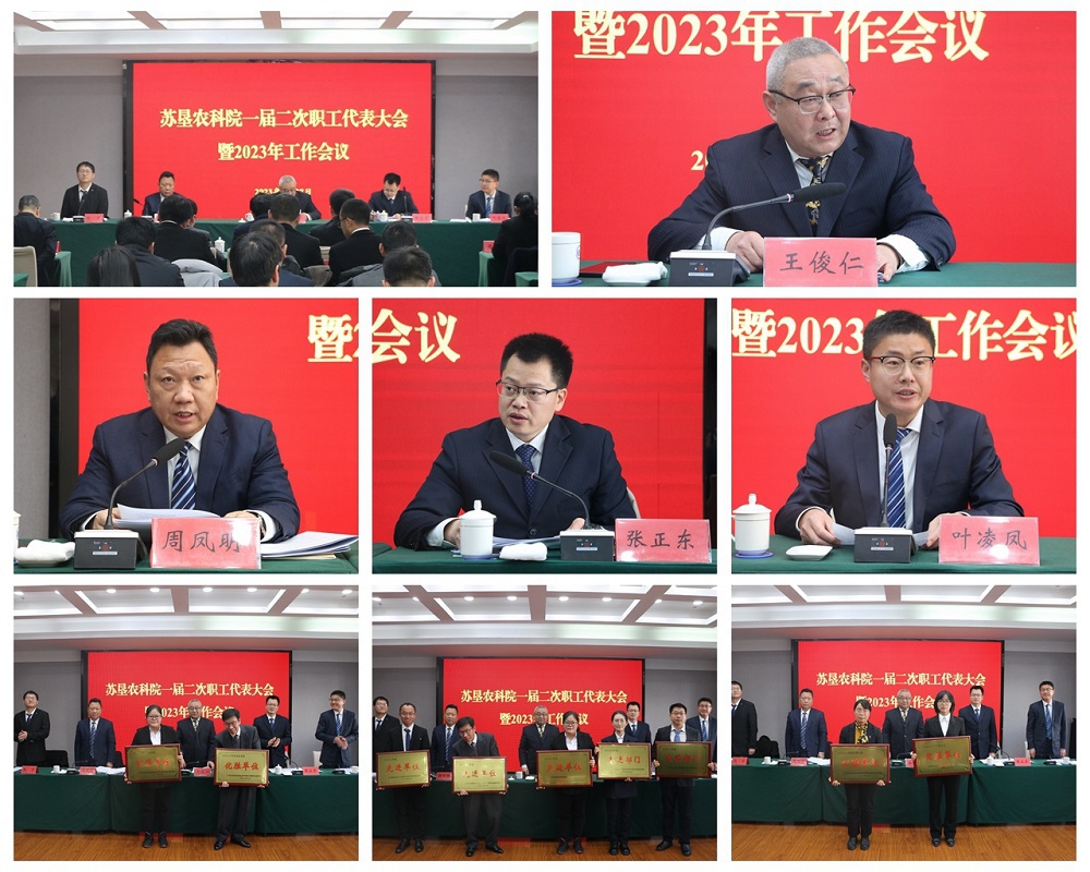 2月27日,蘇墾農科院在淮安召開一屆二次職工代表大會暨2023年工作會議。農科院領導班子成員,總部及下屬單位職工代表共計50余人參加本次會議,受表彰人員及育種院相關人員列席會議。