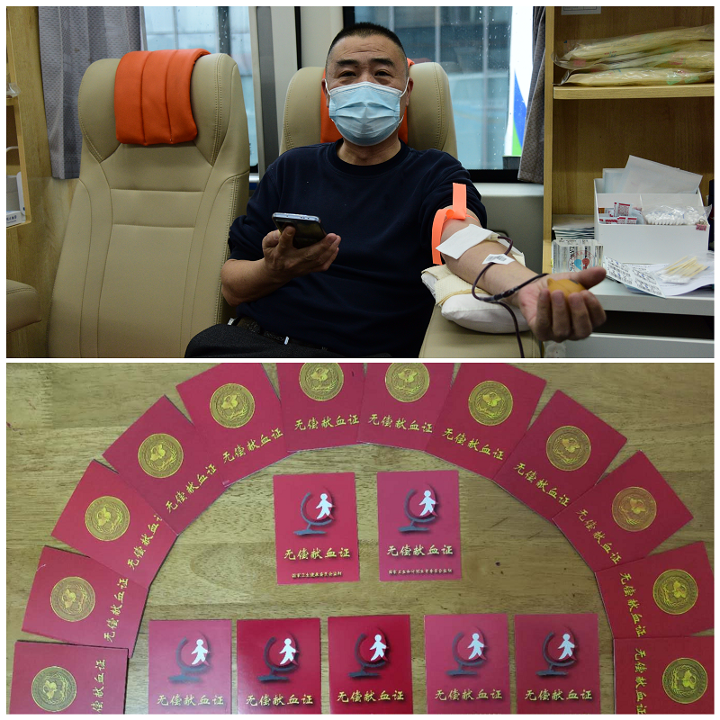 獻(xiàn)血車的空間不大,但大愛(ài)與奉獻(xiàn)在這里傳遞,暖流在這里流淌。正在獻(xiàn)血的汪海峰,是大華種業(yè)集團(tuán)的一名普通員工,他被許多人稱呼為“獻(xiàn)血達(dá)人”。多年來(lái),他堅(jiān)持參與愛(ài)心獻(xiàn)血活動(dòng),積累起來(lái)的無(wú)償獻(xiàn)血證已經(jīng)超過(guò)20本,獻(xiàn)血總量達(dá)9600cc。他是首批“江蘇省無(wú)償獻(xiàn)血榮譽(yù)證”獲得者。“學(xué)雷鋒要見(jiàn)行動(dòng),力所能及、互幫互助嘛。”他說(shuō),“我能夠通過(guò)自己的一點(diǎn)微薄之力就能幫助到需要的人,對(duì)我而言是一件很有意義的事。”面對(duì)現(xiàn)場(chǎng)宣傳人員的鏡頭,他一直婉拒,幾經(jīng)堅(jiān)持才勉強(qiáng)配合拍下一張照片。