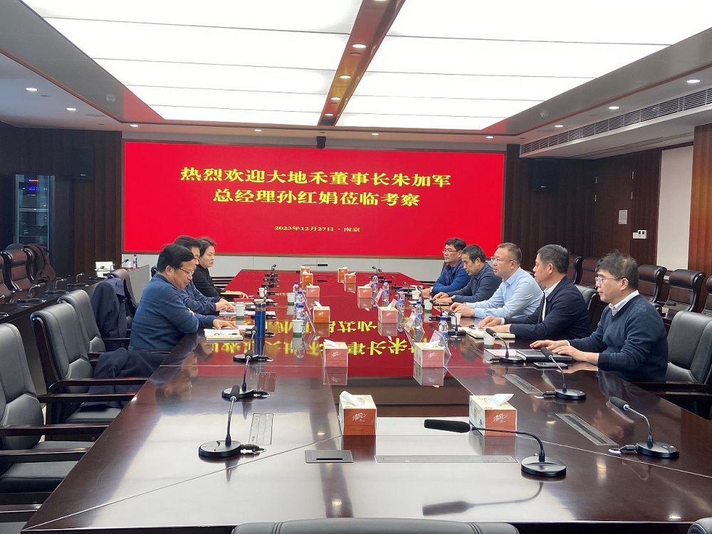 12月27日,江蘇大地禾集團董事長朱加軍到蘇墾農(nóng)發(fā)考察交流,蘇墾農(nóng)發(fā)、大華種業(yè)、蘇墾農(nóng)服相關領導及總部有關部室參加接待座談。
