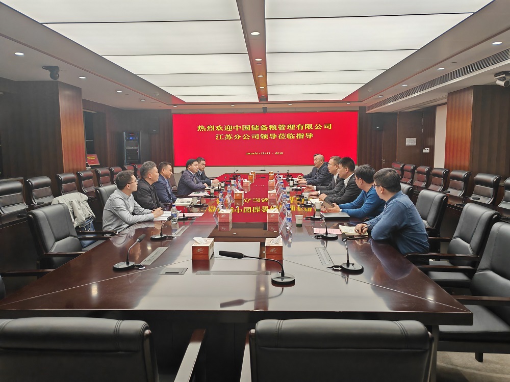 1月9日,中儲糧江蘇分公司黨委書記、總經理程巖峰到蘇墾農發考察交流。集團黨委委員、蘇墾農發副總裁(牽頭經營層工作)丁濤出席座談會。