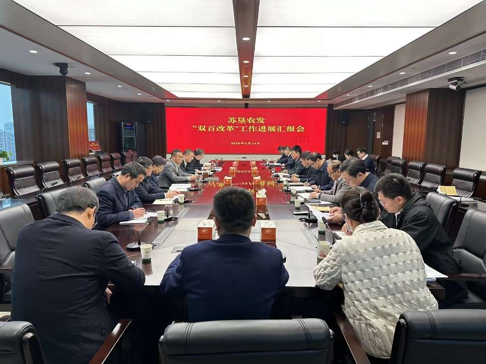 3月14日,蘇墾農發召開“雙百改革”工作進展匯報會,集團總經濟師、蘇墾農發黨委書記、董事長朱亞東主持會議并講話。大華種業、蘇墾米業、蘇墾農服、蘇墾農科院、總部各部門分別匯報“雙百改革”任務進展情況。