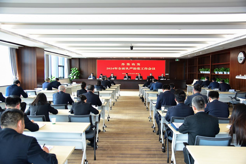 3月14日,蘇墾農發召開2024年全面從嚴治黨工作會議,貫徹落實江蘇農墾全面從嚴治黨工作會議部署要求,回顧總結2023年全面從嚴治黨工作,研究部署2024年重點任務。