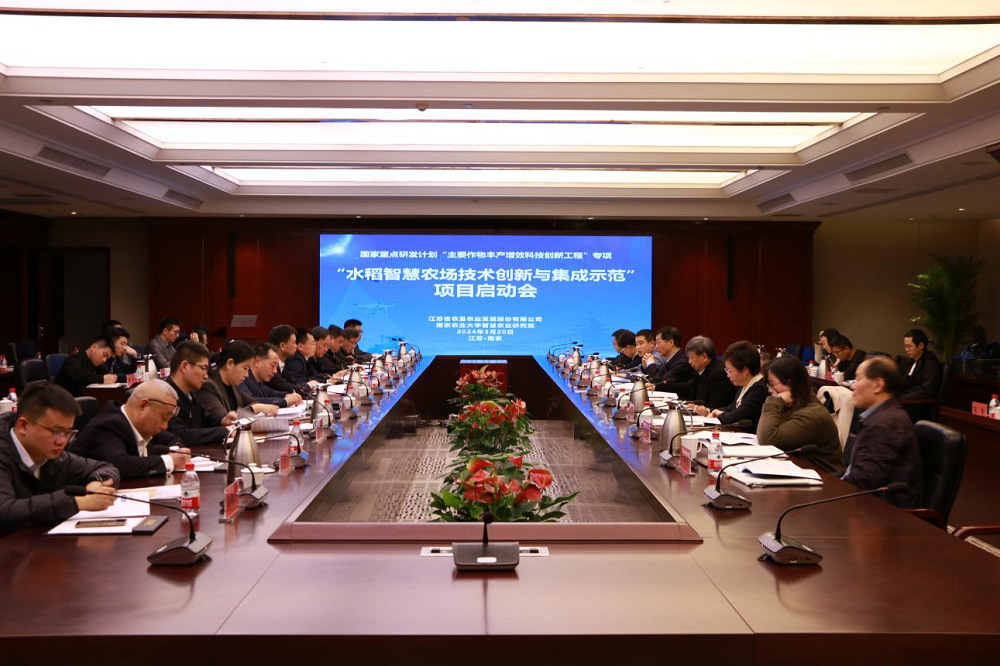 3月20日,由江蘇省農(nóng)墾農(nóng)業(yè)發(fā)展股份有限公司牽頭,南京農(nóng)業(yè)大學(xué)、揚(yáng)州大學(xué)、中國(guó)農(nóng)業(yè)科學(xué)院、東北農(nóng)業(yè)大學(xué)、北京市農(nóng)林科學(xué)院、農(nóng)業(yè)農(nóng)村部南京農(nóng)業(yè)機(jī)械化研究所、上海聯(lián)適導(dǎo)航等單位共同承擔(dān)的“十四五”國(guó)家重點(diǎn)研發(fā)計(jì)劃“主要作物豐產(chǎn)增效科技創(chuàng)新工程”重點(diǎn)專(zhuān)項(xiàng)“水稻智慧農(nóng)場(chǎng)技術(shù)創(chuàng)新與集成示范”項(xiàng)目(2023YFD2300500 )啟動(dòng)會(huì)在南京順利召開(kāi)。