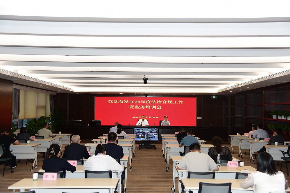 •        8月27日,蘇墾農發2024年度法治合規工作暨業務培訓會在寧召開。農墾集團黨委委員,公司黨委副書記、董事、總裁丁濤出席會議并講話。