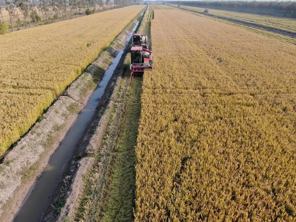 (2024年11月初,蘇墾農發各分公司抓緊晴好天氣收割水稻)
