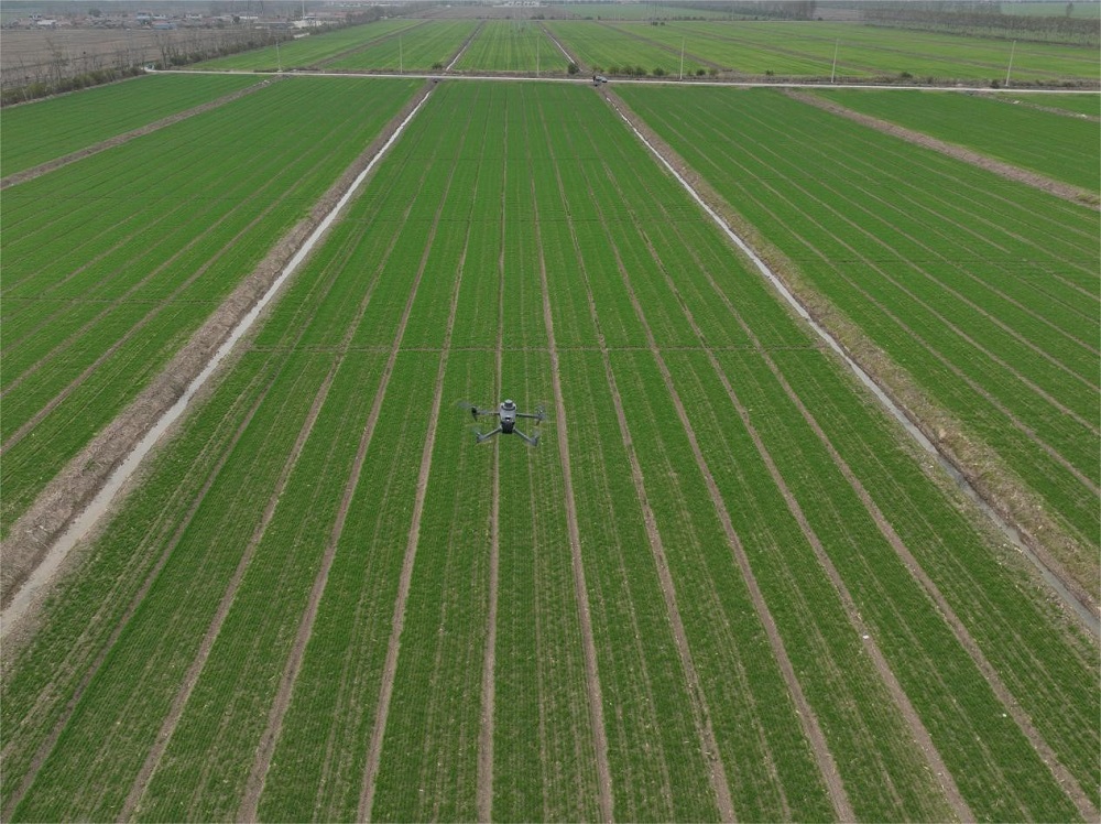 在播種完小麥的田間,無人機有序飛行在半空,像田間衛士一樣,記錄著在田作物狀況。播種后,各基層單位主動組織無人機飛手進行隨機巡田,及時召開生產檢查通報視頻會議,以此強化生產管理,為小麥高產打下堅實基礎。