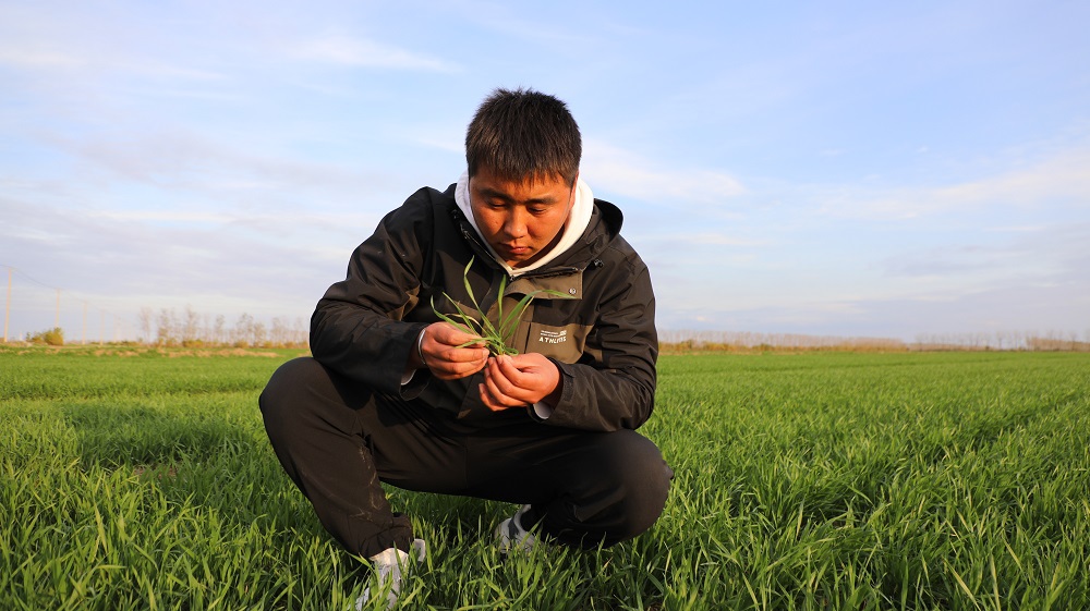 屈天元,1992年出生于遼寧省營口市,2015年從淮陰工學院農學專業畢業后便應聘到東辛,成為東洋生產區一名技術員。跨越1200公里,只身一人來到東辛,面對陌生的工作環境、鹽堿化程度高的土壤條件、腔調難懂的本地方言……他放低姿態,虛心向身邊前輩請教。為了摸清地塊情況,他天天下田,風里來雨里去,腳上是泥水、頭上是汗水。在他的記憶里,剛來生產區時水泥路還沒有完全覆蓋,雨后道路泥濘,騎摩托車摔倒、擦傷更是家常便飯,就是憑著一股沖勁,不到三個月,生產區的地塊哪頭高、哪有坑他都能脫口而出。平日里他還十分注重理論知識的積累與運用,他所撰寫的《大疆MG1P植保無人機防治小麥赤霉病藥效試驗》論文在《現代農業科技》學術期刊成功發表。