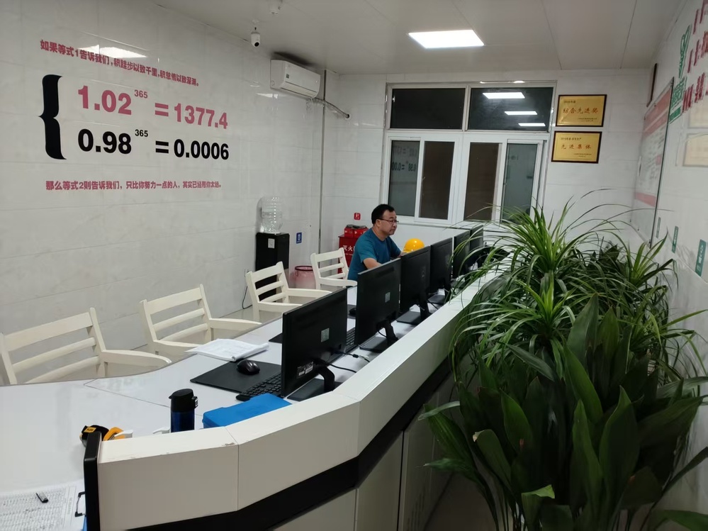 堅守崗位顯擔當,實干篤行展風采。臨近退休的制冷與水處理班組顏師傅,依舊干勁十足。節日期間,他仍一如既往地檢測機組、水泵、蒸發冷等設備,通過觀察機組運行狀態,聽設備有無異常聲響,一絲不地履行崗位職責。在項目施工現場,現場管理員李宇手持圖紙與監理仔細核對每一處細節,汗水浸濕工裝,灰塵沾了臉龐,他始終用專業與專注為項目順利推進保駕護航。